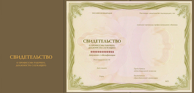 Свидетельство установленного образца сформировано на основании Приказа Минпросвещения России от 14.07.2023 № 534 «Об утверждении перечня профессий рабочих, должностей служащих, по которым осуществляется профессиональное обучение»